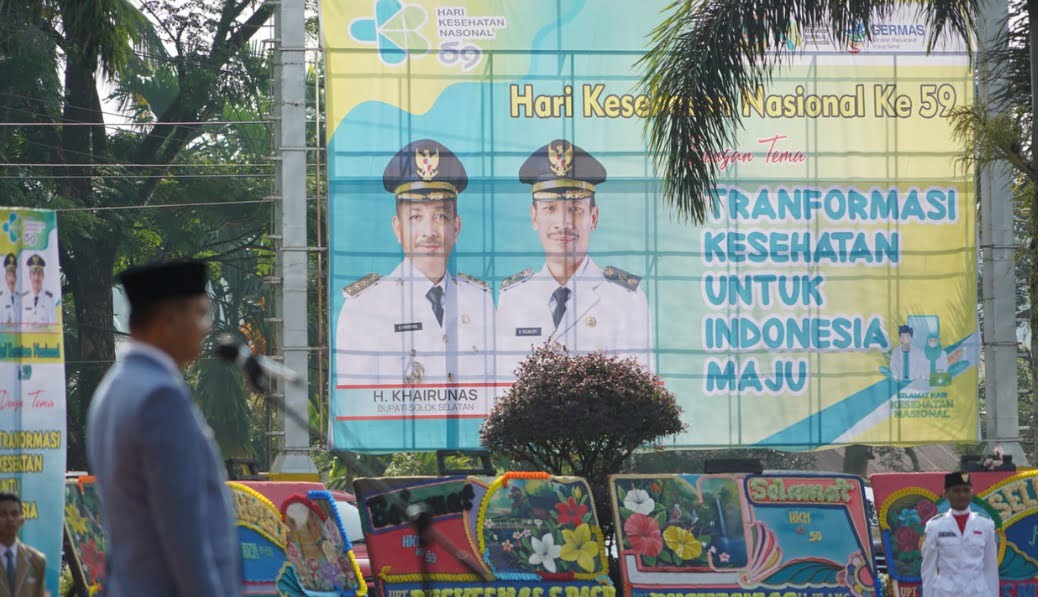“Pemerintah pusat tidak mampu melakukannya sendiri. Hanya dengan sinergi yang kuat dan kolaborasi yang erat antara pemerintah pusat, pemerintah daerah, dan seluruh elemen masyarakat, enam pilar transformasi kesehatan bisa kita tegakkan untuk perubahan yang lebih baik,” kata Khairunas saat upacara peringatan Hari Kesehatan Nasional Ke-59 di halaman Kantor Bupati Solsel, Senin (13/11).
