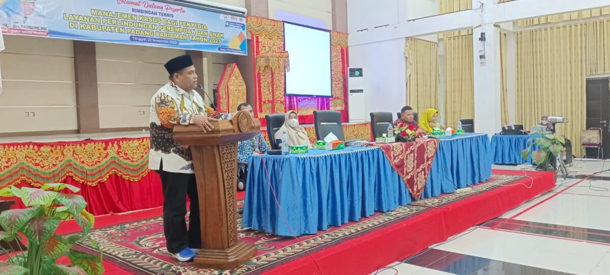 PADANG PARIAMAN, HARIANHALUAN.ID — Dinas Sosial, Pemberdayaan Perempuan, dan Perlindungan Anak (Dinsos P3A) Padang Pariaman memberikan bimbingan teknis (bimtek) manajemen kasus bagi lembaga penyedia layanan perlindungan perempuan dan anak di Hall Kantor Bupati, Kawasan IKK Parit Malintang, Kamis (23/11).