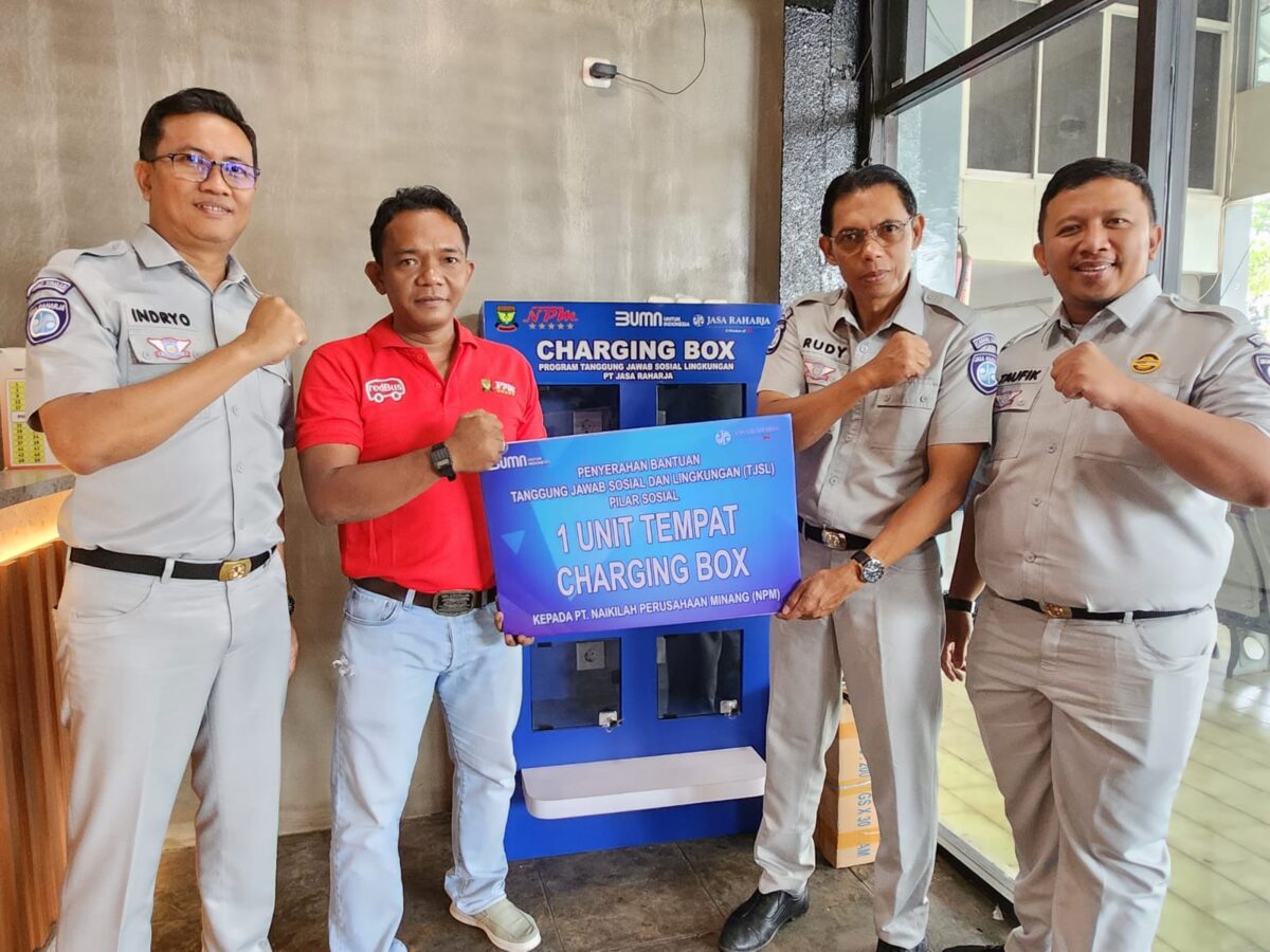 HARIANHALUAN.ID – Meningkatkan pelayanan bagi para penumpang bus di Poll NPM Padang, Jasa Raharja serahkan Charging Box kepada PT. Naikilah Perusahaan Minang (NPM) pada, Jumat (8/12).