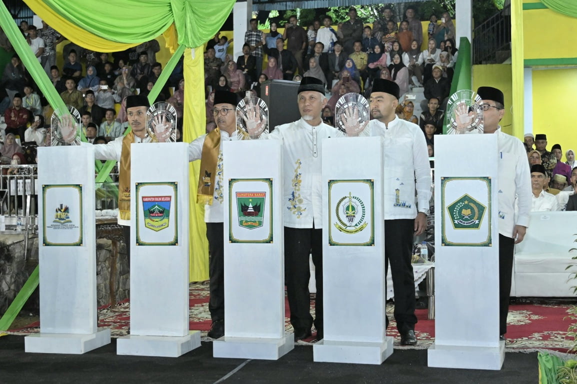 Gubernur Sumbar, Mahyeldi Ansharullah, Wagub, Audy Joinaldy, Bupati Solsel, Khairunas, Wabup, Yulian Elfi, dan Kepala Kemenag, Mahyudin, saat  membuka secara resmi gelaran MTQN ke-40 atau MTQN XL tingkat Provinsi Sumbar yang dipusatkan di Kabupaten Solok Selatan (Solsel), Selasa (12/12) malam. IST/HUMAS