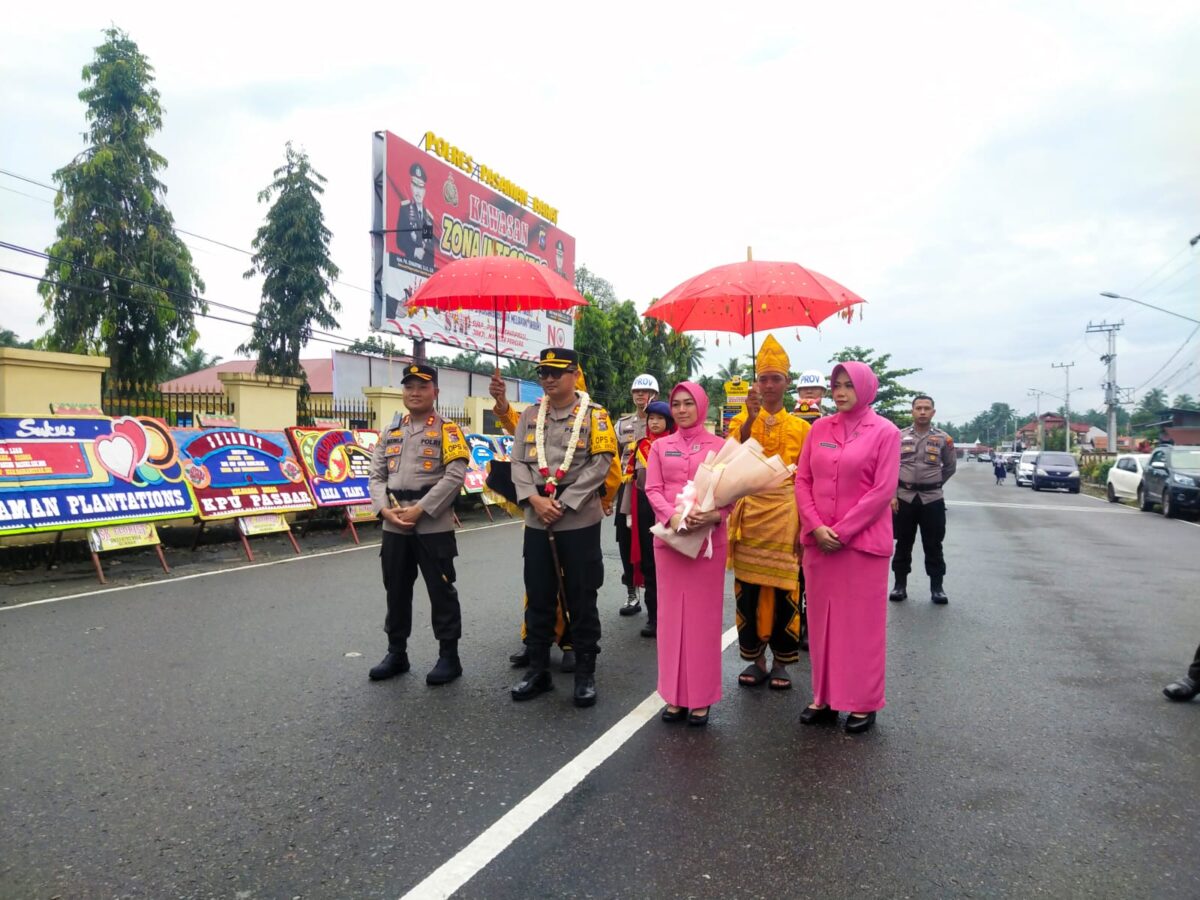 Kedatangan Kapolres Pasbar yang baru AKBP Nurhadiansyah SIK bersama Ny. Futty Nurhadiansyah disambut oleh Kapolres Pasbar yang lama AKBP Agung Basuki dan Ny Mutia Agung Basuki SIK MM.