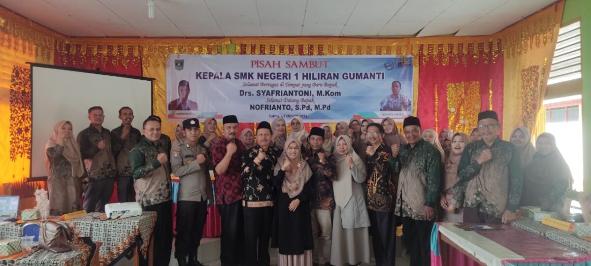 Teks foto—Sertijab Kepala Sekolah SMKN 1 Hiliran Gumanti dihadiri oleh Kacabdin Wilayah III, Arosuka, Solok Raya yang diwakili oleh Kasi SMK cabdin wilayah III, Weli Yuniarti kordinator pengawas cabdin wilayah III, Baharuddin Harahap, Ketua MKKS kabupaten Solok, Husni Lahar, komite sekolah, seluruh majelis guru dan tata usaha SMKN 1 Hiliran Gumanti, perwakilan guru SMKN 1 Pantai Cermin dan perwakilan Kapolsek Hiliran Gumanti. (Dafit)