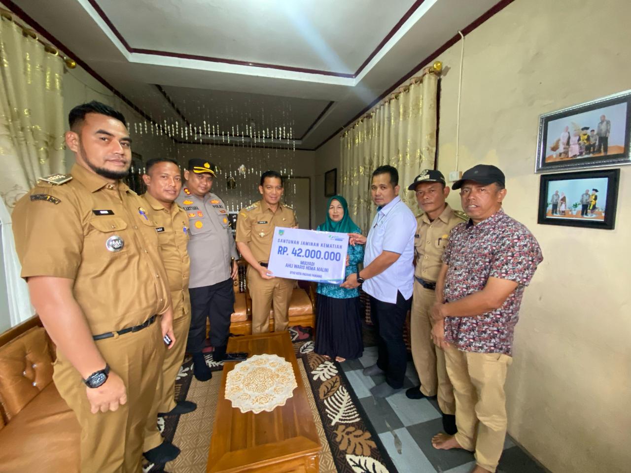 Penyerahan santunan di rumah ahli waris yakni Hema Malini tersebut, turut didampingi Kapolres Padang Panjang AKBP. Kartyana Widyarso, S.IK, Kepala Dinas Penanaman Modal dan Pelayanan Terpadu Satu Pintu (DPMPTSP), Fhandy Ramadhona, Camat Padang Panjang Barat Romi Ar Rahman, Kabid Kepesertaan dari BPJS Ketenagakerjaan Medi, dan Lurah Tanah Hitam Wedriko.