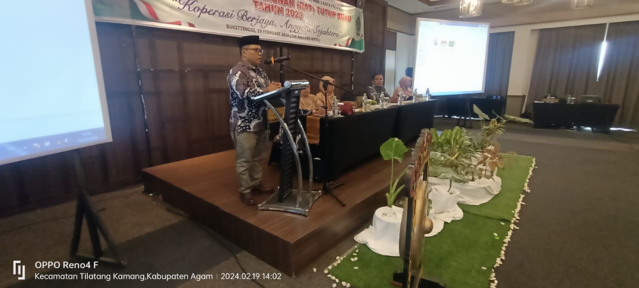 HARIAN HALUAN. ID – Koperasi Simpan Pinjam dan Pembiayaan Syariah (KSPPS) Madrasah Aliyah Negeri (MAN) 3 Padang menggelar rapat anggota (RAT) tahun buku 2023  di Balcone Hotel Padang Hijau, Gadut, Tilatang Kamang Senin (19/2/24).