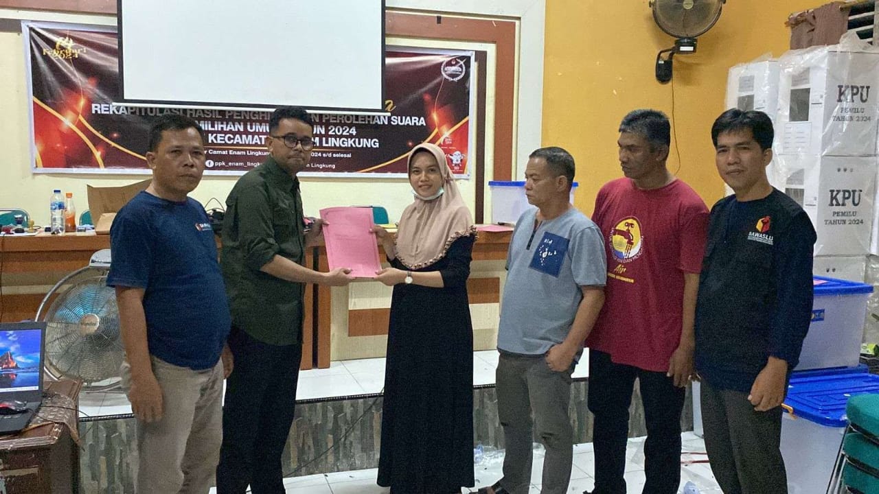 Panitia Pemilihan Kecamatan (PPK) Enam Lingkung, Kabupaten Padang Pariaman telah selesai melaksanakan rekapitulasi penghitungan surat suara tingkat kecamatan di kantor camat setempat, Kamis (22/2/2024) sore.