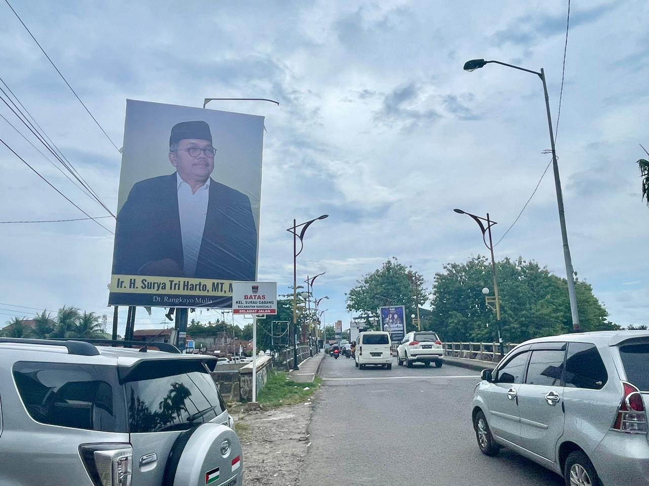 PADANG, HARIANHALUAN.ID– Pascapemilu 2024, mulai bertebar baliho baru. Termasuk baliho Surya Tri Harto Datuak Rangkayo Mulia Nan Di Apa bertebar di lokasi-lokasi strategis Kota Padang, Kota Solok, Kota Padang Panjang, dan Kabupaten Tanah Datar.