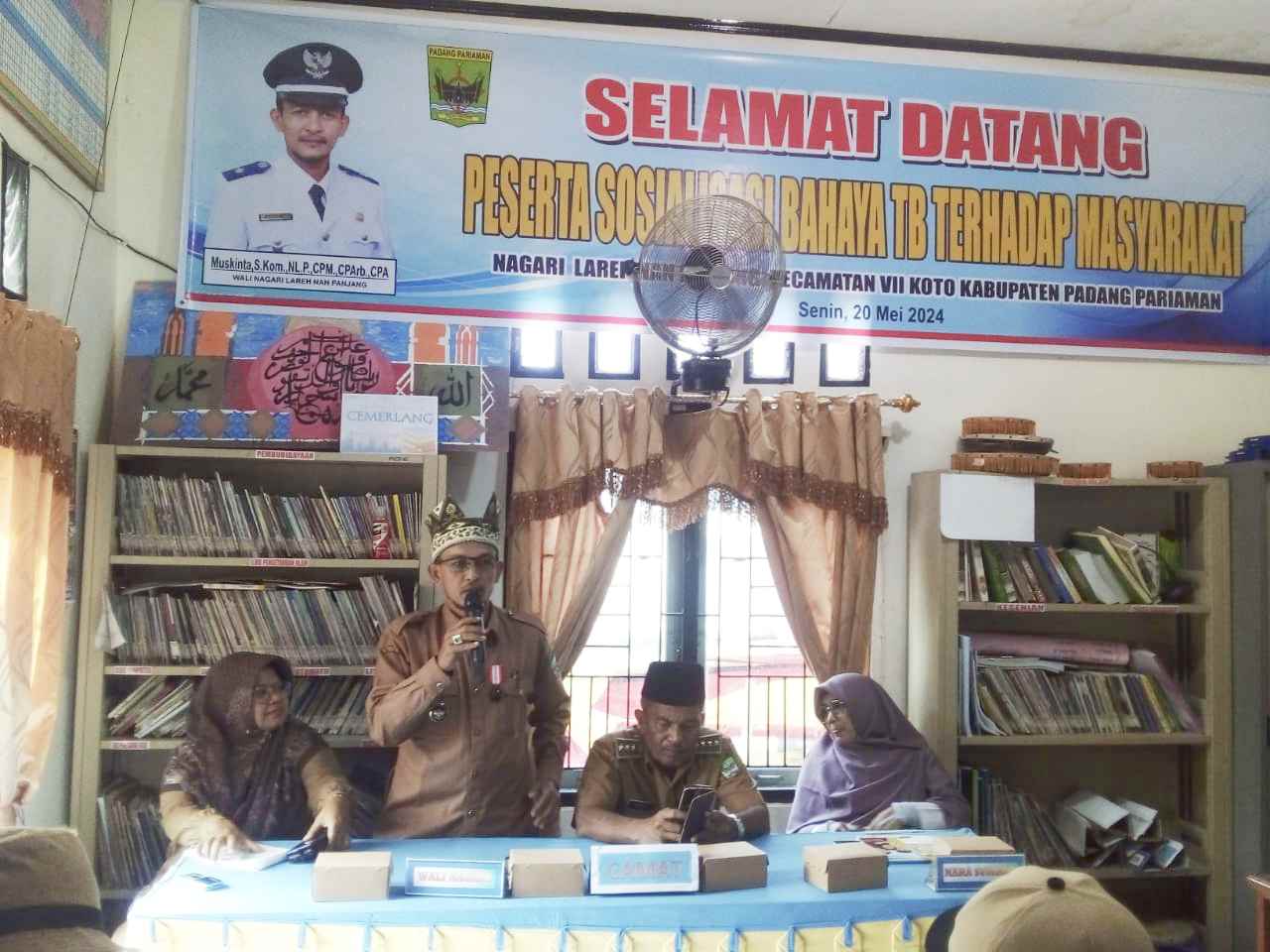 PADANG PARIAMAN, HARIANHALUAN.ID- Nagari Lareh Nan Panjang mensosialisasikan bahaya penyakit tuberkulosis (TBC) guna mengoptimalkan upaya pencegahan penyakit itu kepada 40 orang unsur masyarakat di kantor nagari setempat, Senin, (20/5/2024).