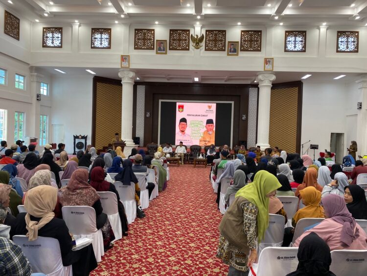 Teks Foto : Wali Kota Bukittinggi, Erman Safar menyalurkan zakat kepada penerima zakat di Rumah Dinas Wali Kota Bukittinggi Belakang Balok, Rabu (5/6). IST.