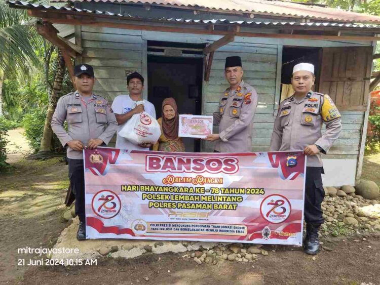 PASBAR, HARIANHALUAN ID- Rangkaian kegiatan aksi kepedulian sosial yang menyentuh langsung kepada masyarakat dalam rangka menyambut Hari Bhayangkara ke-78 tahun 2024, Polres Pasaman Barat melaksanakan pembagian Bantuan Sosial (Bansos), Jumat (21/6/2024).