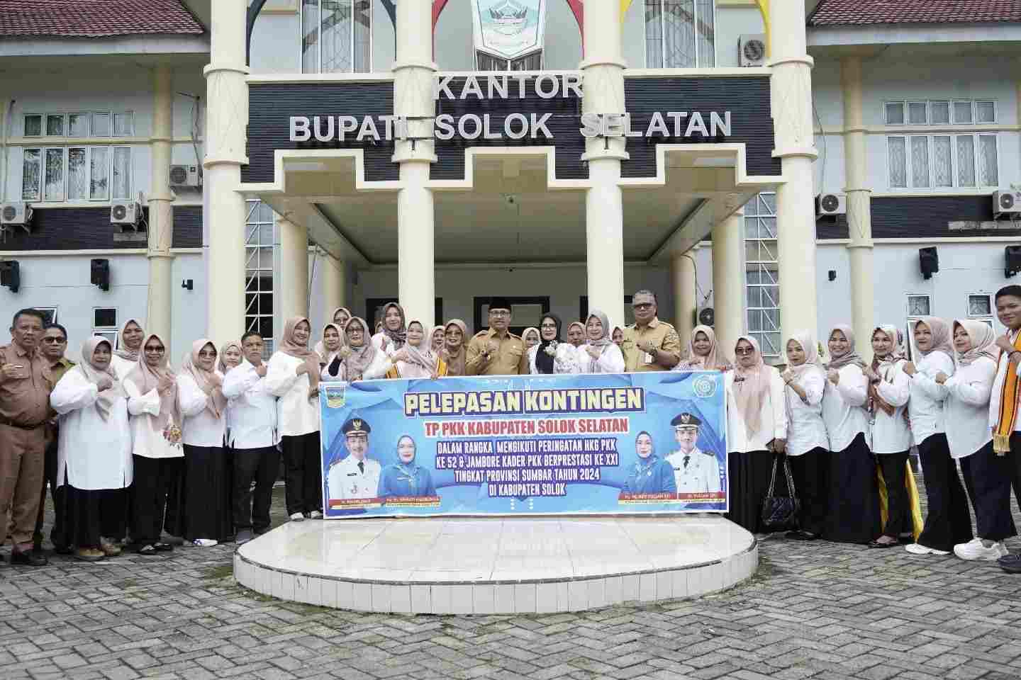 “Harapan kita semua, Kontingen Jambore PKK Kabupaten Solok Selatan mendapatkan hasil yang terbaik, sebagai motivasi kita harus menargetkan menjadi juara umum pada pelaksanaan Jambore PKK tingkat provinsi ini,” ujar Khairunas di Halaman Kantor Bupati Solok Selatan.