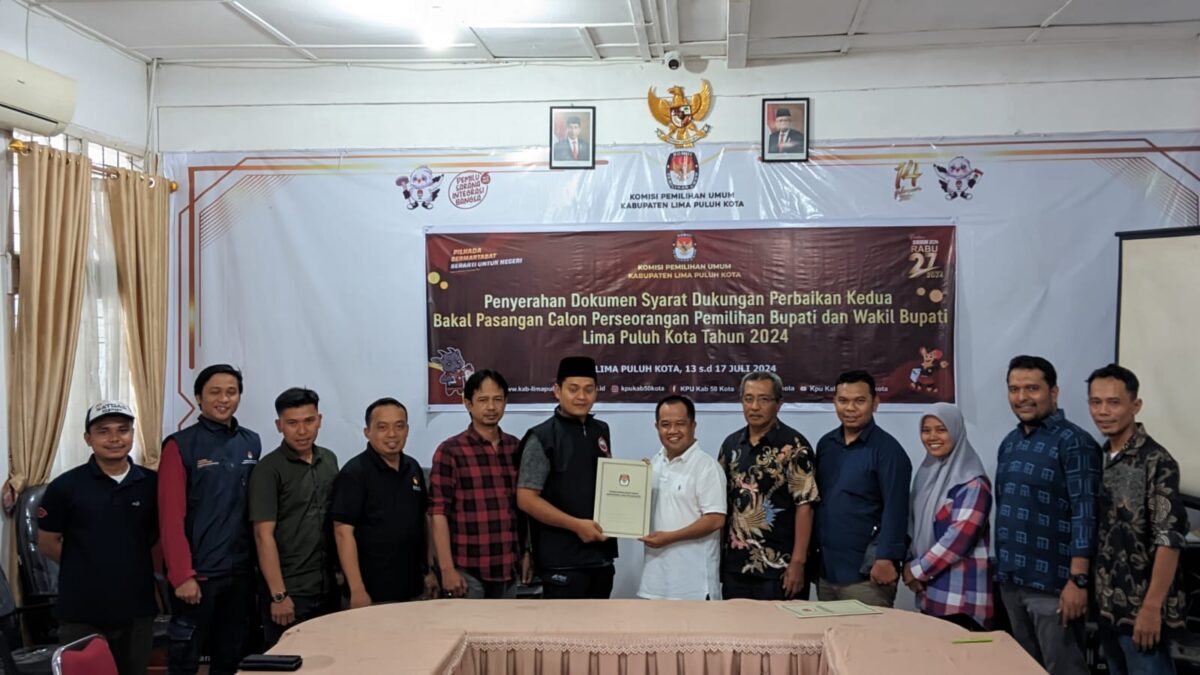 Pasangan Ferizal Ridwan-Dedi Henidal yang datang ke KPU Limapuluh Kota bersama simpatisan, relawan dan tim pemenangan mengungkapkan, penyerahan berkas dukungan perbaikan telah dilakukannya sesuai dengan peraturan KPU RI No. 8 tahun 2024.
