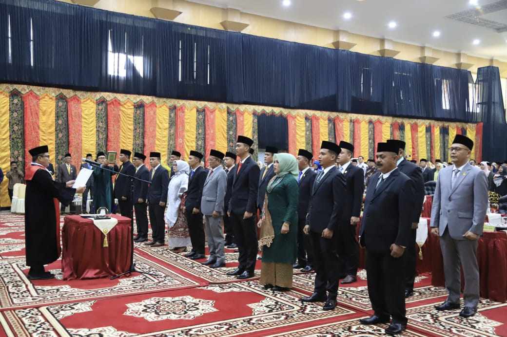 SOLOK, HARIANHALUAN.ID- Sebanyak 20 orang Anggota DPRD Kota Solok periode 2024-2029 resmi dilantik dan diambil sumpahnya, Rabu (7/8/2024). Prosesi pengambilan sumpah jabatan itu dipimpin oleh Ketua Pengadilan Negeri Solok yang digelar di Gedung Kubuang Tigo Baleh Kota Solok.