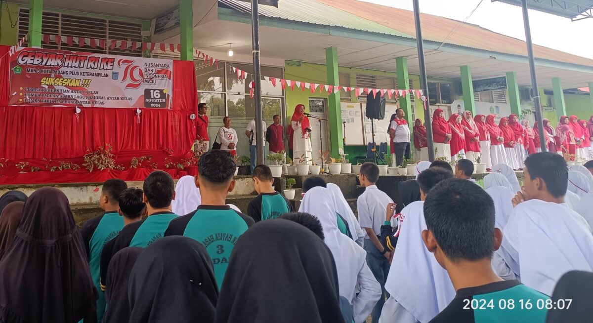 HARIANHALUAN. ID – Dalam rangka merayakan HUT RI ke-79 tahun, Madrasah Aliyah Negeri (MAN) 3 Padang menggelar serangkaian lomba antar kelas dengan tema Nusantara Baru Indonesia Maju, Jumat (16/8/24).