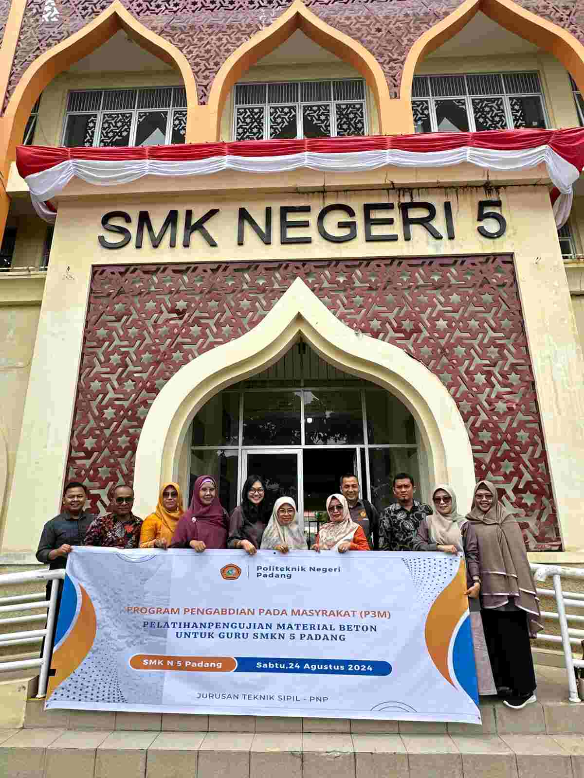 PADANG, HARIANHALUAN.ID – Tim pengabdian masyarakat Politeknik Negeri Padang (PNP) Jurusan Teknik Sipil yang diketuai oleh Lusyna,ST.,MT beranggotakan Mukhlis,-ST.,MT, Enita Suardi,ST.,MT, Zulfira Mirani,ST.,MT dan Wahyu Aktorina,ST.,MT memberikan pelatihan pengujian material beton kepada guru-guru SMKN 5 Padang pada 24 Agustus lalu. Lusyna kepada Haluan Jumat (30/8) mengatakan, pengujian beton perlu dilakukan untuk memastikan beton siap digunakan untuk berbagai jenis proyek konstruksi.