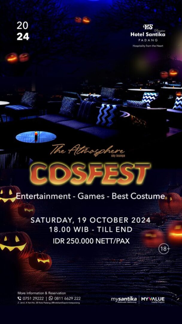 “Pada Sabtu, 19 Oktober 2024, dengan suasana mewah nan santai yang memadukan area indoor dan outdoor, Cosfest menawarkan ruang bagi para cosplayer di kota Padang untuk unjuk kreativitas dan bakat,” ujarnya, Jumat (11/10).