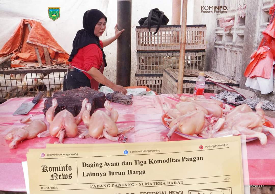 PADANG PANJANG, HARIANHALUAN.ID- Empat komoditi utama di Pasar Pusat Kota Padang Panjang alami penurunan harga pada minggu ketiga Oktober 2024 ini. Diantaranya daging ayam broiler, cabai hijau, cabai rawit dan bawang merah.