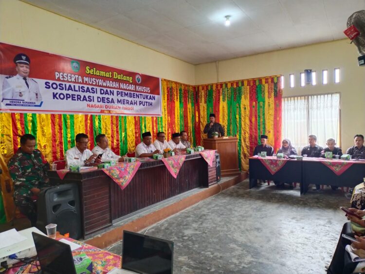 PASAMAN, HARIANHALUAN.ID — Pemerintah Nagari Durian Tinggi Kecamatan Lubuk Sikaping Kabupaten Pasaman menggelar Musyawarah Nagari Khusus Pembentukan Koperasi Desa Merah Putih di Gedung Pertemuan Anak Nagari Durian Tinggi, Kamis (28/05/2025).