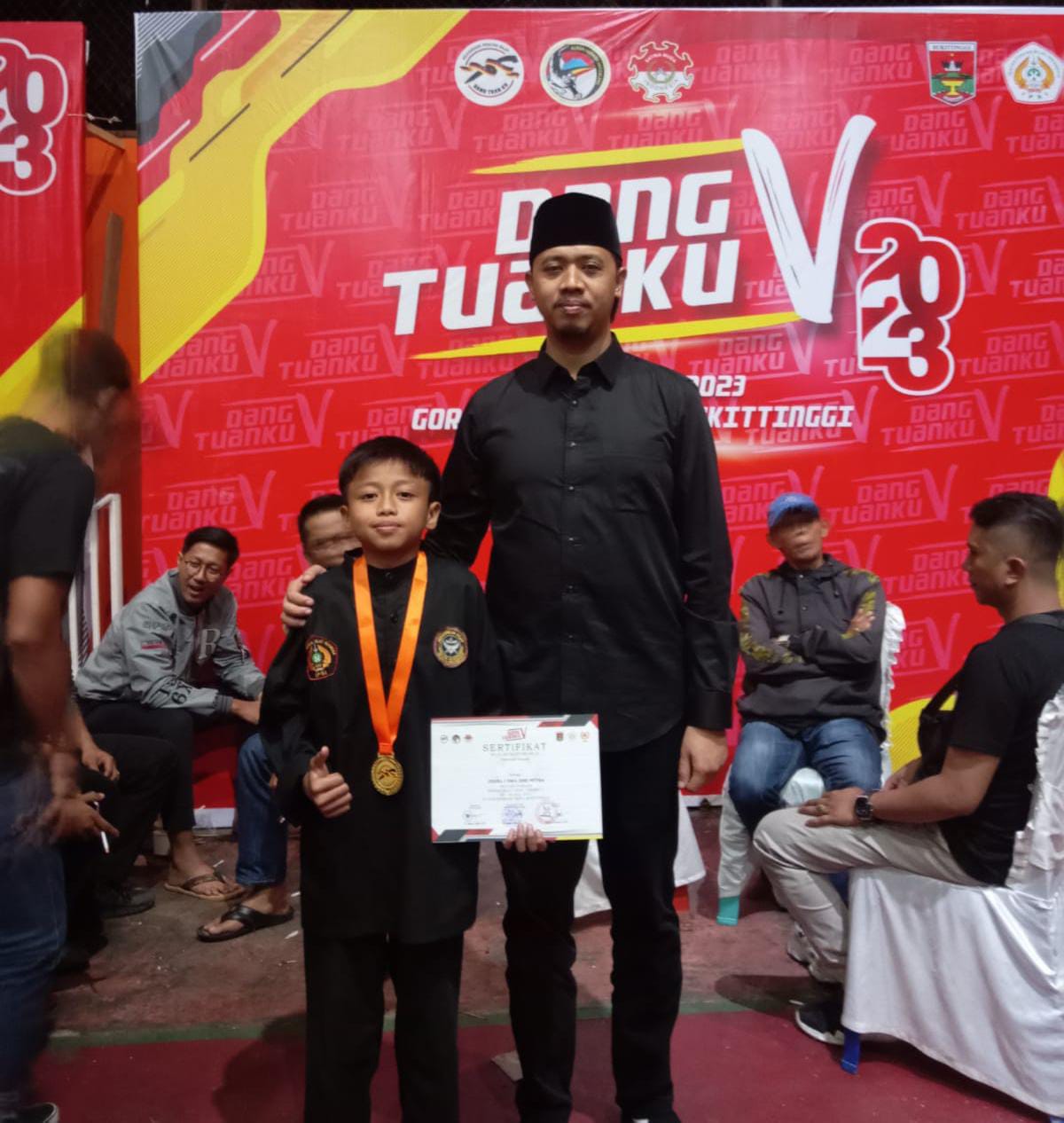 Setelah meraih kemenangan, Alif berkesempatan untuk berfoto bersama dengan Wali Kota Bukittinggi H. Erman Safar, S.H., yang memberikan apresiasi kepada para juara pencak silat Dang Tuanku ke-5. (*)