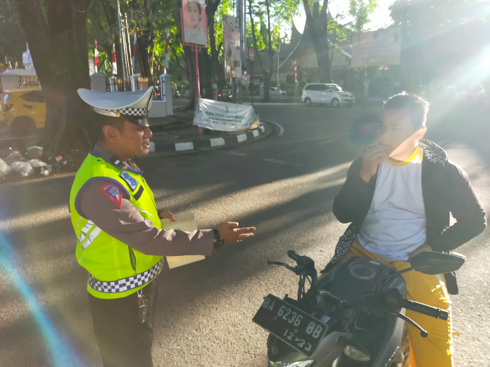 Pada Rabu (31/8/2022), terlihat personel BM Satlantas Polresta Padang menindak pengendara yang tidak memakai helm dan langsung ditilang.