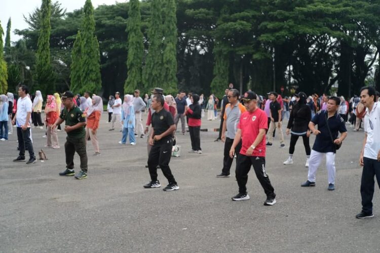 Teks Foto : Senam massal yang digelar pada acara HUT Dharmasraya sebelumnya.ist