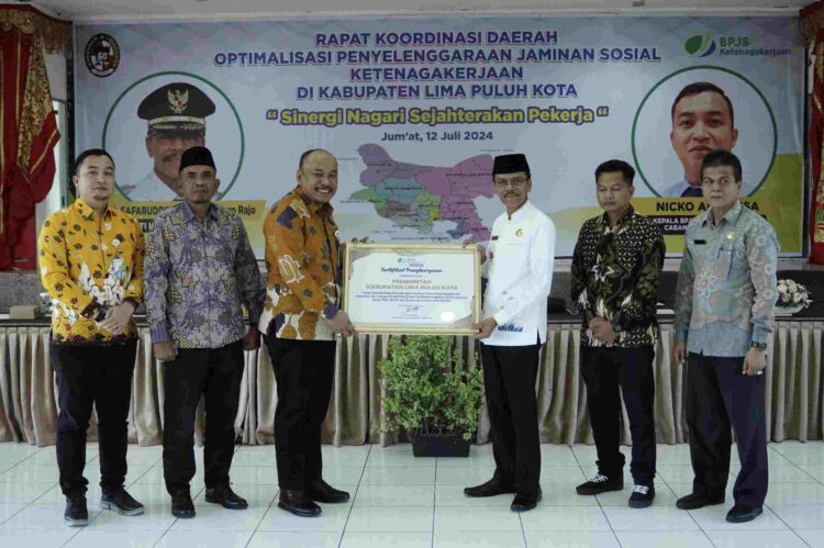 LIMAPULUHKOTA, HARIANHALUAN.ID– Pemerintah Kabupaten (Pemkab) Lima Puluh Kota diganjar penghargaan oleh BPJS Ketenagakerjaan atas komitmennya dalam memberikan perlindungan jaminan sosial ketenagakerjaan.