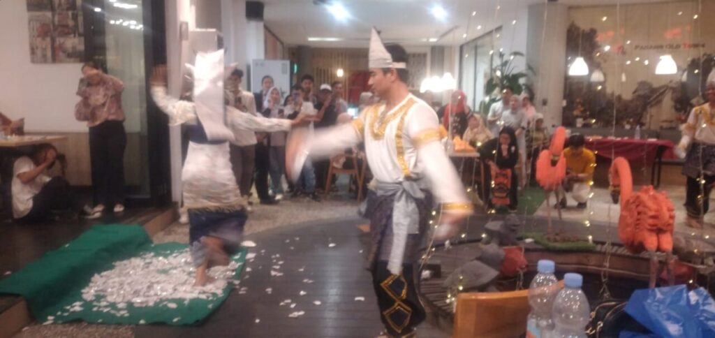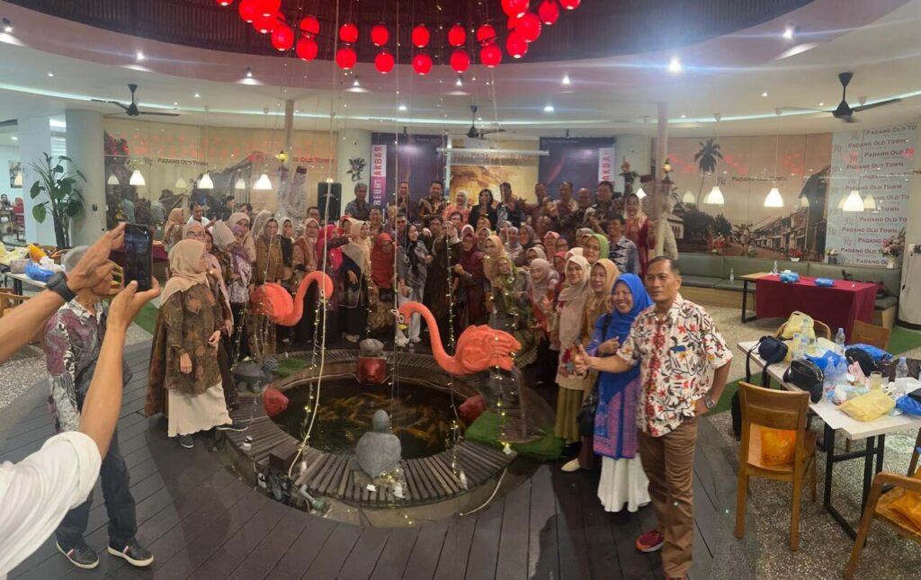 PADANG, HARIANHALUAN.ID — Sesi kedua Reuni 40 Tahun Alumni SMPN 1 Padang angkatan 1985, makin meriah dengan hiburan pantun dan lagu KIM serta tampilan tari piring di atas kaca oleh Team Motivator Nazar Aziz, di Padang Old Town, Sabtu (1/11) sore hingga menjelang tengah malam.