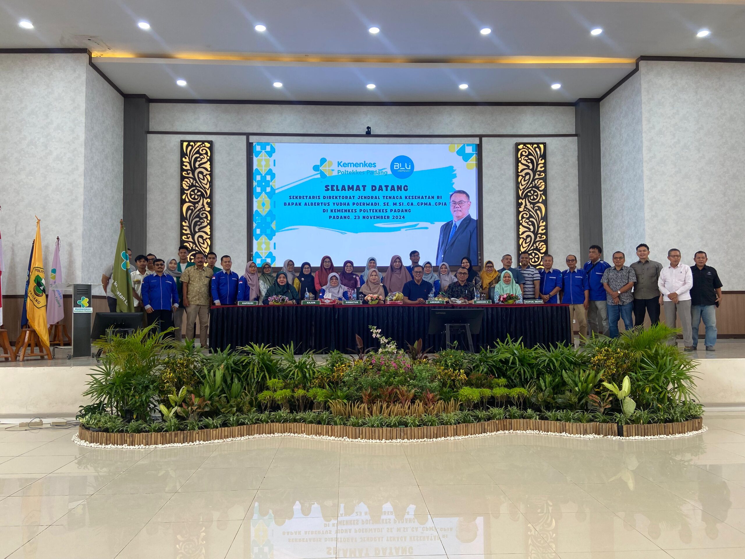 HARIANHALUAN.ID – Sekretaris Ditjen Nakes, Albertus Yudha Poewardi, SE, M.Si., CA., CPMA., CPIA mengunjungi Poltekkes Kemenkes Padang, Sabtu (23/11).