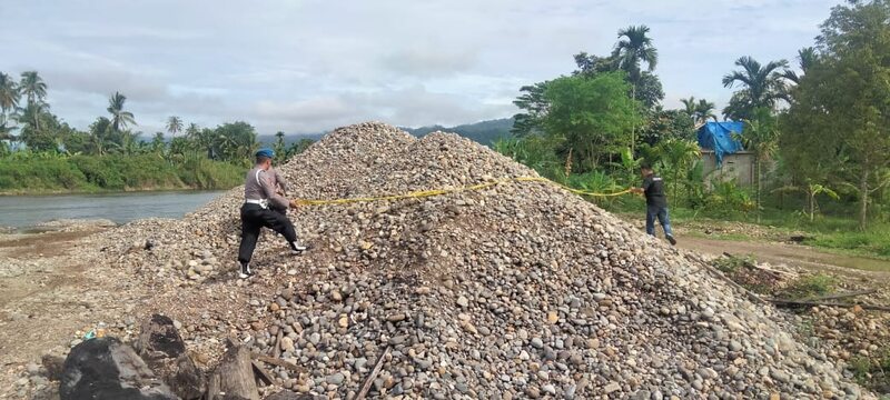 Saat personel kepolisian memasang garis polisi ini tidak terlihat seorang pun pekerja di lokasi tambang galian C tersebut.