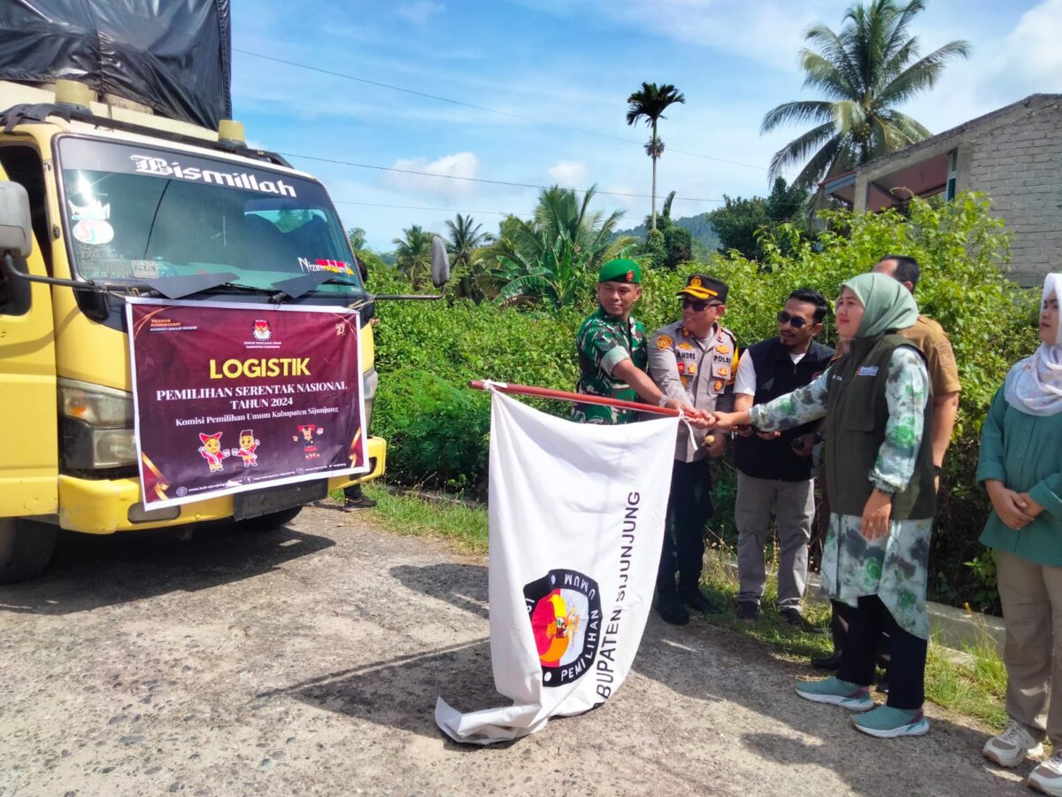 SIJUNJUNG,HARIANHALUAN.ID– Logistik untuk Pemilihan Umum (Pemilu) serentak 27 November tahun 2024 di Kabupaten Sijunjung mulai didistribusikan ke kecamatan – kecamatan sampai di Tempat Pemungutan Suara (TPS), Selasa (26/11) yang dilepas langsung oleh Sekdakab Sijunjung beserta KPU dan Muspida Kabupaten Sijunjung dari Gudang Logistik KPU Sijunjung.