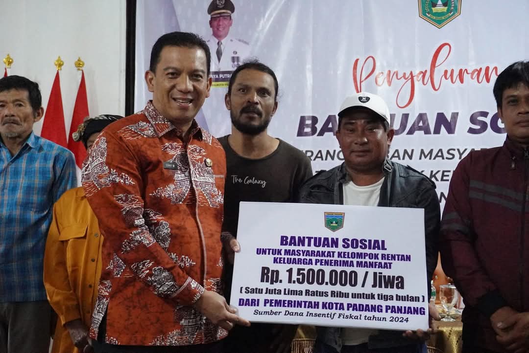 PADANG PANJANG, HARIANHALUAN.ID– Penjabat (Pj) Wali Kota, Sonny Budaya Putra menyerahkan Bantuan Sosial (Bansos) untuk masyarakat kelompok rentan dalam rangka pengendalian inflasi 2024.