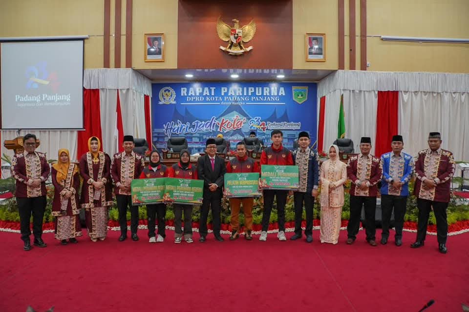 PADANG PANJANG, HARIANHALUAN.ID— Sepuluh tokoh Padang Panjang mendapatkan penghargaan berupa Pin Emas dari Pemerintah Kota pada peringatan Hari Jadi Kota (HJK) ke-234, Minggu (1/12/2024) di Ruang Rapat DPRD.