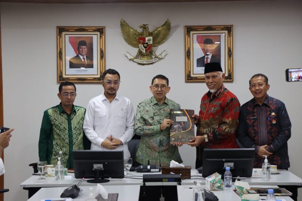 JAKARTA,HARIANHALUAN.ID– Gubernur Sumatra Barat (Sumbar) Mahyeldi Ansharullah bersama Kepala Dinas Kebudayaan Jefrinal Arifin menemui Menteri Kebudayaan RI Fadli Zon di Kompleks Kementerian Pendidikan dan Kebudayaan Gedung A Lantai 2 Jalan Jendral Sudirman Senayan Jakarta Senin (9/12/2024).