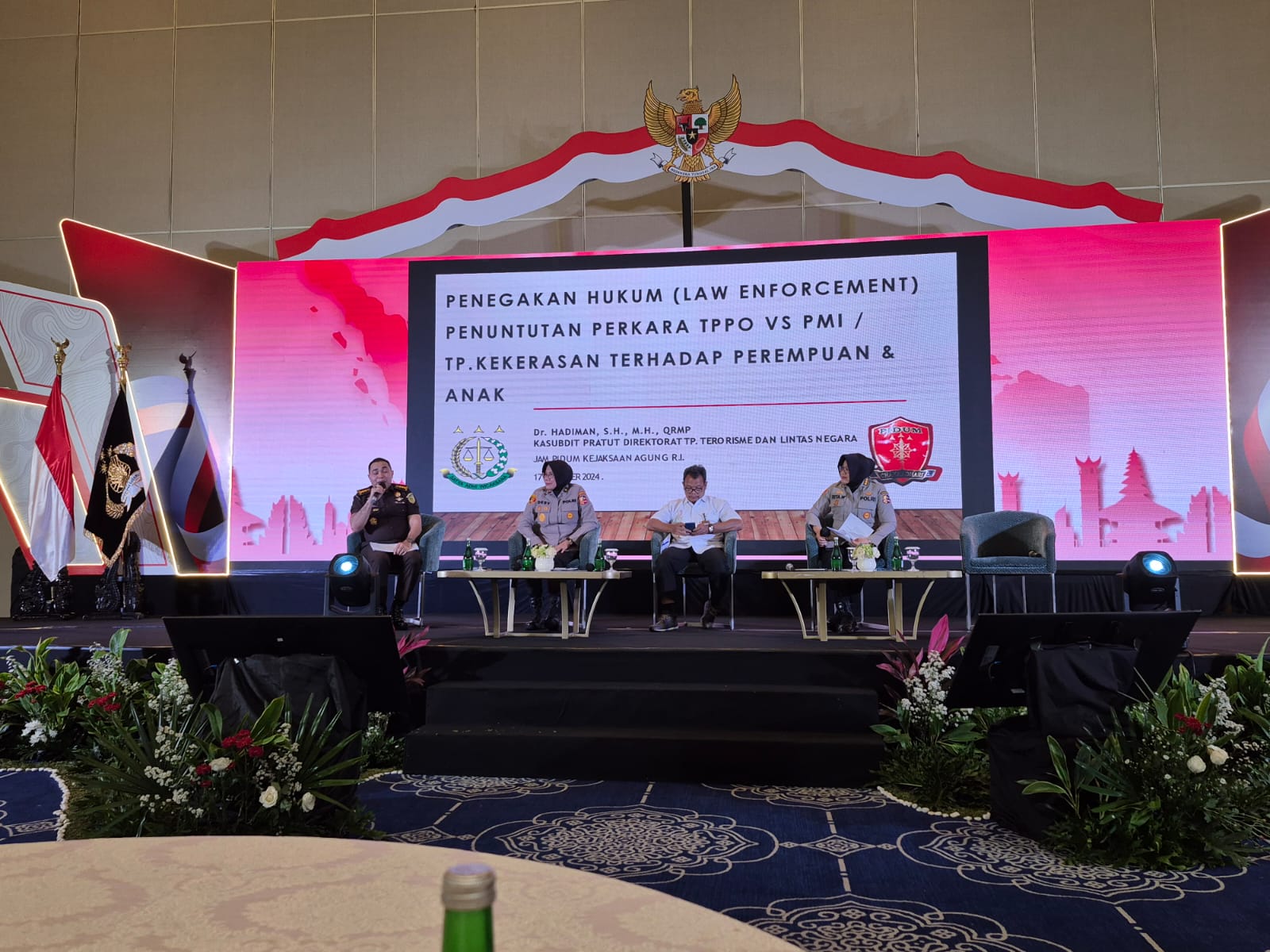 Sebagai narasumber, Dr. Hadiman menyampaikan materi penting terkait perbedaan penanganan kasus Tindak Pidana Perdagangan Orang (TPPO) dan kekerasan terhadap perempuan dan anak, serta kompleksitas hukum dalam melindungi Pekerja Migran Indonesia (PMI).