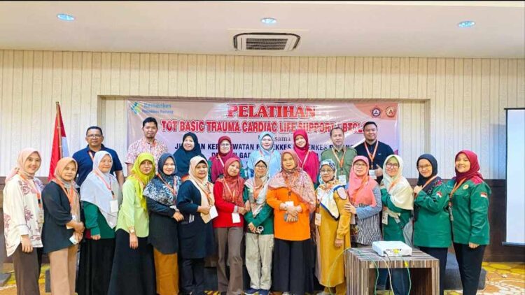 PADANG, HARIANHALUAN.ID- Poltekkes Kemenkes Padang mengadakan pelatihan Training of Trainer Basic Trauma Cardiac Life Support (TOT BTCLS) bagi 18 orang dosen dan PLP di lingkungan Jurusan Keperawatan.