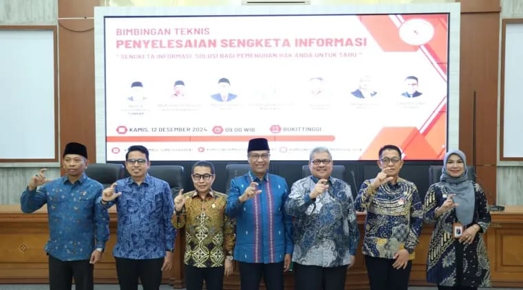 BUKITTINGGI, HARIANHALUAN.ID – Ketua DPRD Provinsi Sumatera Barat (Sumbar), Muhidi membuka sekaligus menjadi narasumber bimbingan teknis (bimtek) penyelesaian sengketa informasi terhadap masyarakat, Kamis (12/12/2024) di Aula Balaikota Bukittinggi.