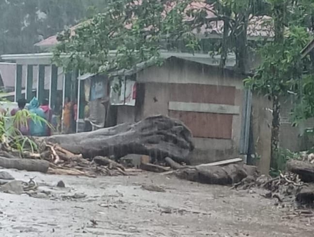“Banjir bandang ini membawa material lumpur, batu dan kayu setinggi 50 centimeter yang menutupi jalan sepanjang 100 meter,” ucapnya.