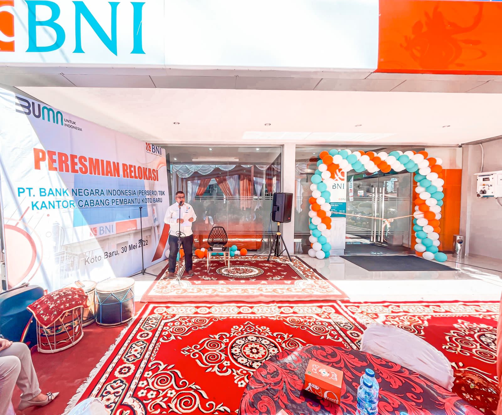 HALUANNEWS, DHARMASRAYA — BNI Kantor Cabang Solok resmi merelokasi (memindahkan) Kantor Cabang Pembantu (KCP) Koto Baru ke gedung baru di seberang kantor lama di Jalan Raya Lintas Sumatra Simpang Empat, Nagari Koto Baru, Kabupaten Dharmasraya, Senin (30/5/2022).