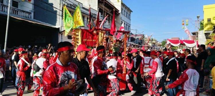 HARIANHALUAN.ID – Ribuan masyarakat Kota Padang khususnya warga Tionghoa di Kawasan Pondok terpukau dengan aksi yang digelar dalam karnaval sepasan Himpunan Bersatu Teguh (HBT), Selasa (31/12). Karnaval yang dihelat sore hingga malam hari tersebut menampilkan pertunjukkan barongsai dan arakan sepasan.