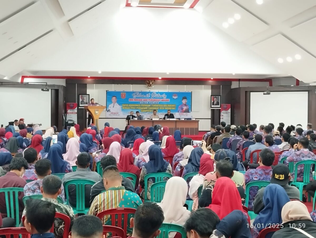 AGAM, HARIANHALUAN.ID- Untuk memperjuangkan peningkatan kesejahteraan bagi walinagari dan perangkat nagari, Walinagari dan Perangkat Nagari se-Kabupaten Agam mengadakan rapat koordinasi pada Kamis (16/01/2025) di Aula PPSDM Kemendagri Baso Agam.