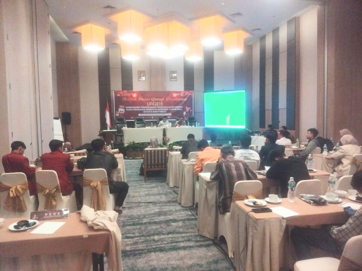 Kegiatan FGD manajemen penanganan permasalahan hukum pada pemilihan serentak nasional tahun 2024 itu, dihadiri oleh jajaran Komisioner KPU Bukittinggi, Kepala Badan Kesbangpol, Rektor Perguruan Tinggi, Ketua LKAAM, Ketua Organisasi Mahasiswa dan OKP, Ketua KIPP, PPK/PPS dan awak media.