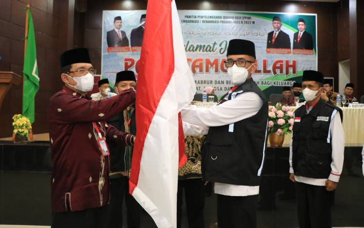 HALUANNEWS, PADANG – Kepala Kantor Wilayah (Kanwil) Kementerian Agama (Kemenag) Provinsi Sumatra Barat melepas secara resmi rombongan Jemaah Calon Haji ,(JCH) Kloter II Embarkasi Padang.