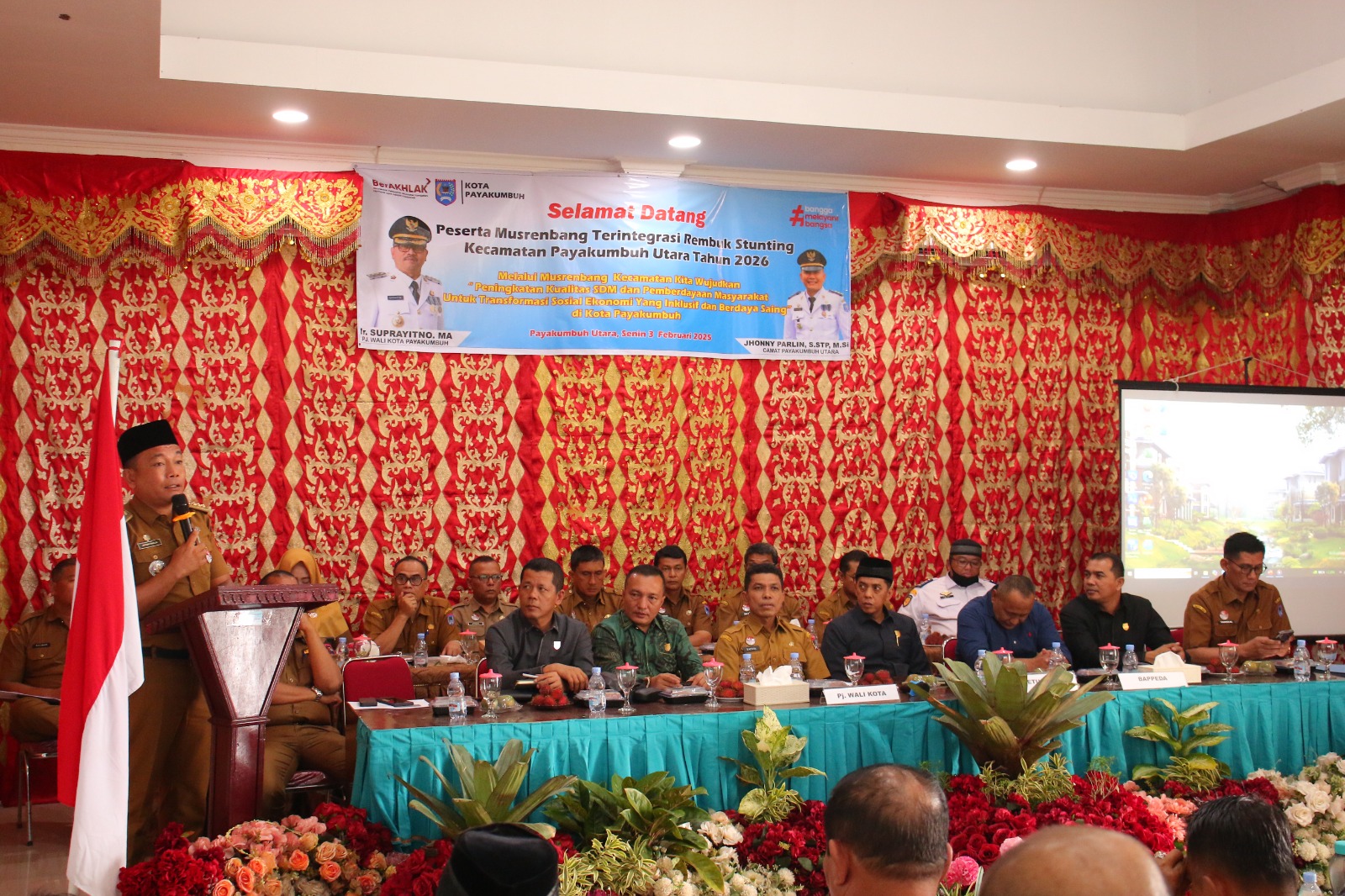 PAYAKUMBUH, HARIANHALUAN.ID – Kecamatan Payakumbuh Utara menjadi kecamatan pertama di Kota Payakumbuh yang melaksanakan Musrenbang Terintegrasi Rembuk Stunting Tahun 2026, di aula kecamatan setempat, Senin (3/2) pagi.