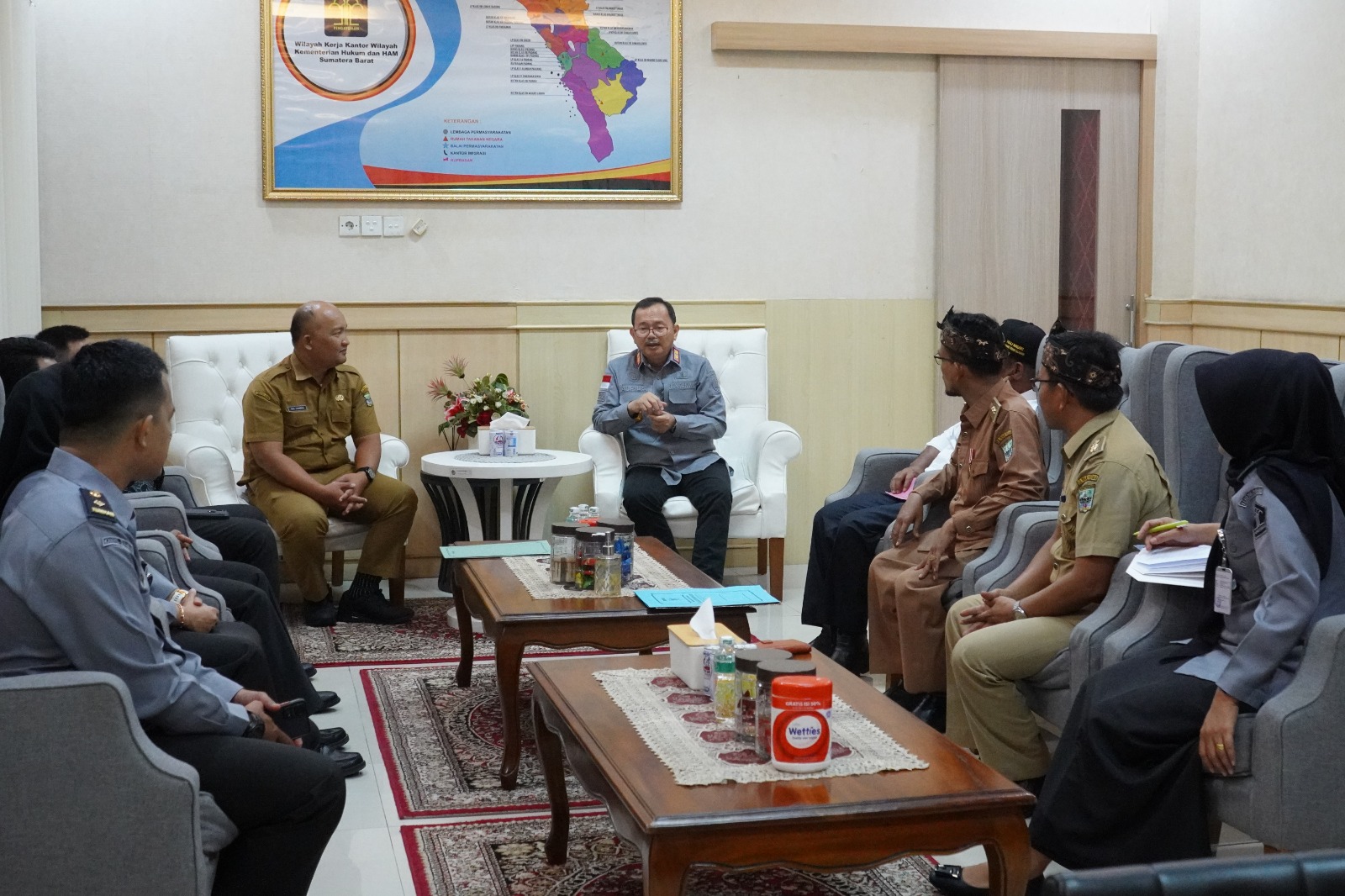 Pertemuan ini juga dihadiri oleh Riki Zakaria, Kabag Hukum Kabupaten Padang Pariaman. Pertemuan ini dilakukan di ruang kerja Kakanwil Hukum dan HAM di Padang pada Senin (4/1/2025).