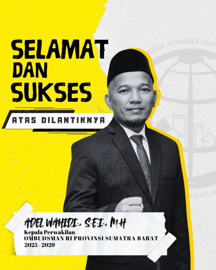“Kami segenap jajaran Kantor Pertanahan Kabupaten Padang Pariaman mengucapkan selamat kepada Bapak Adel Wahidi atas amanah baru sebagai Kepala Perwakilan Ombudsman RI Sumbar. Semoga dapat menjalankan tugas dengan baik dan membawa Ombudsman semakin maju dalam memberikan pelayanan terbaik bagi masyarakat,” ujar Ahmad Yandi, Senin (10/2/2025).