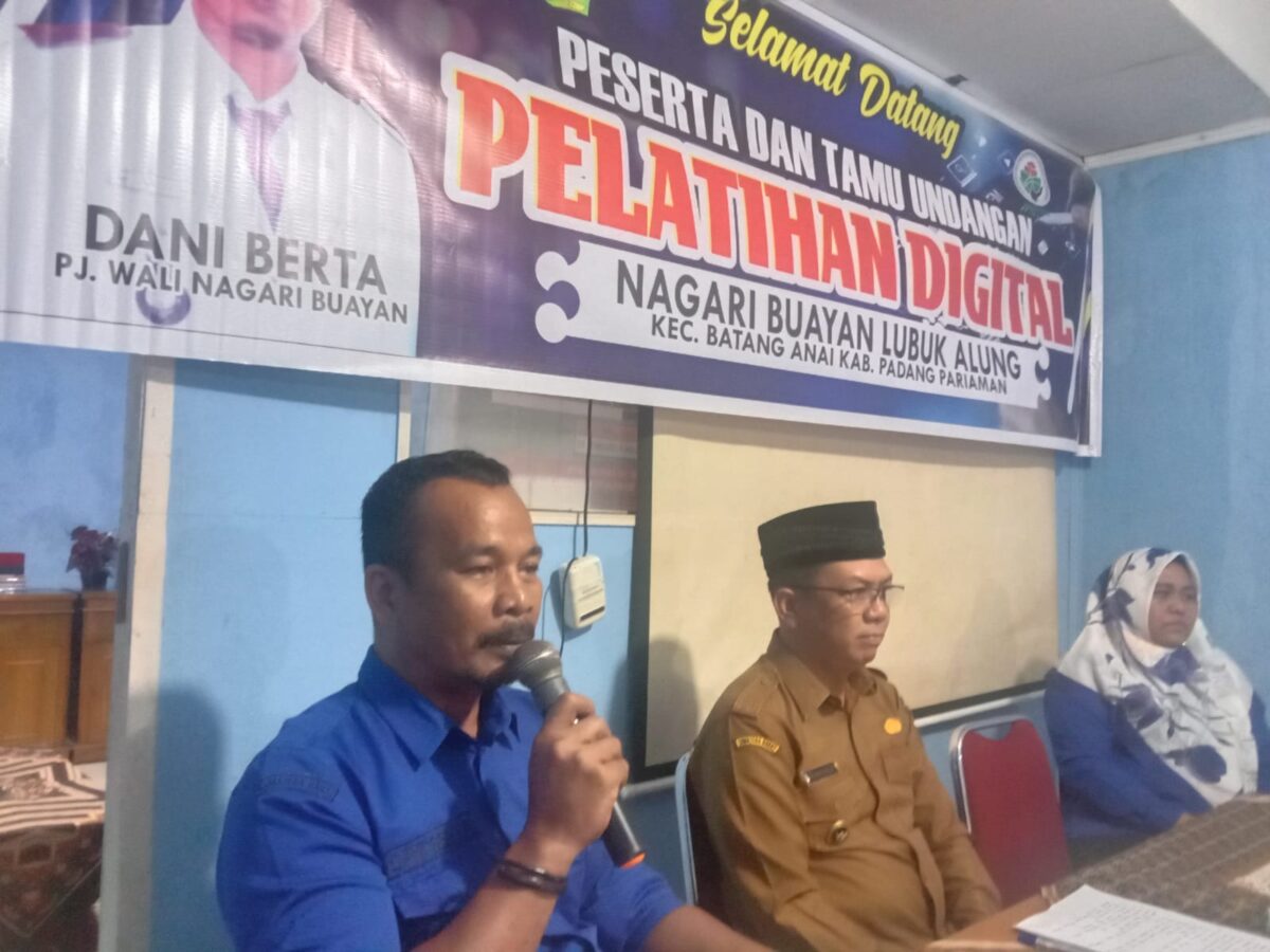 PADANG PARIAMAN, HARIANHALUAN.ID- Wali Nagari Kuranji Hulu, Padang Pariaman, Salman Hardani Dt. Rajo Harimau, diundang sebagai narasumber dalam Pelatihan Digitalisasi (Konten Media Sosial) di Nagari Buayan, Kecamatan Batang Anai, Padang Pariaman, pada Selasa (11/02).