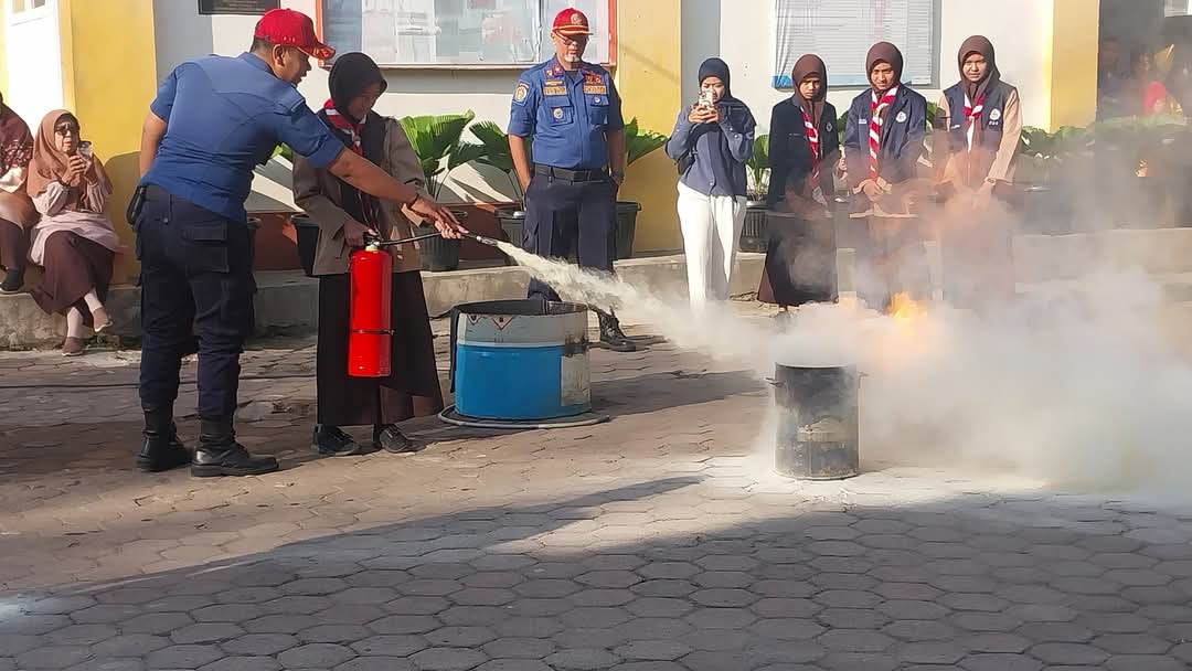 PADANG, HARIANHALUAN.ID- Dinas Pemadam Kebakaran (Damkar) Kota Padang memberikan edukasi penanganan kebakaran terhadap siswa dan tenaga pendidik di SMP Negeri 8 Kota Padang, Kamis (13/2/2025).