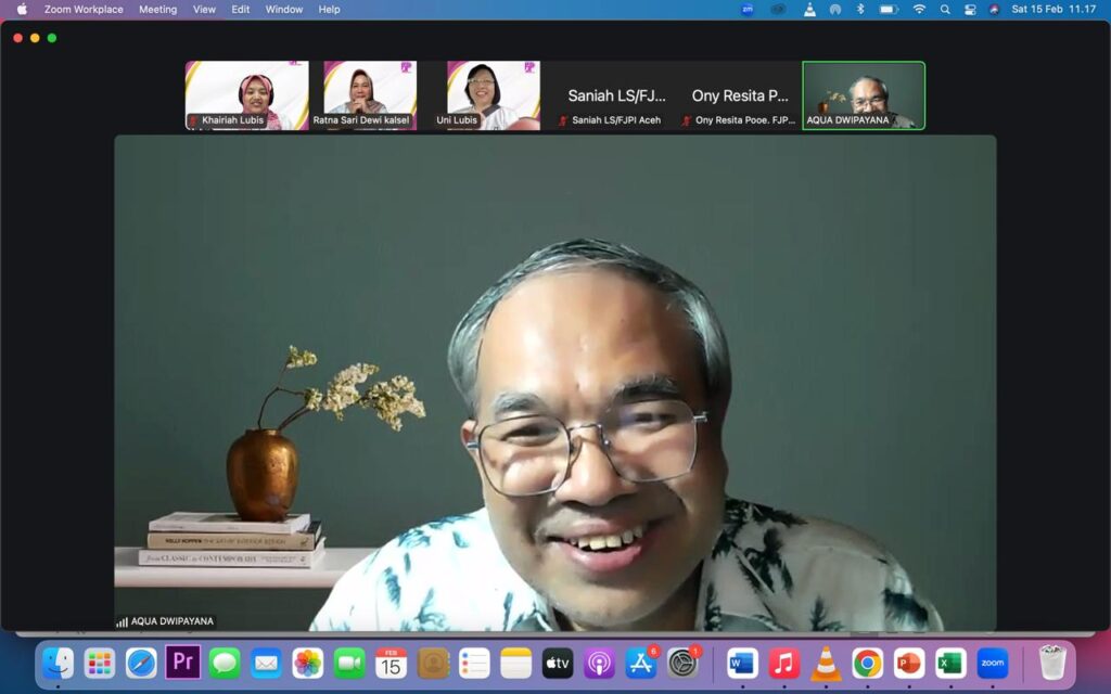 Dalam materinya, Aqua menekankan pentingnya membangun kredibilitas, komitmen, dan konsistensi dalam menjalankan tugas jurnalistik.