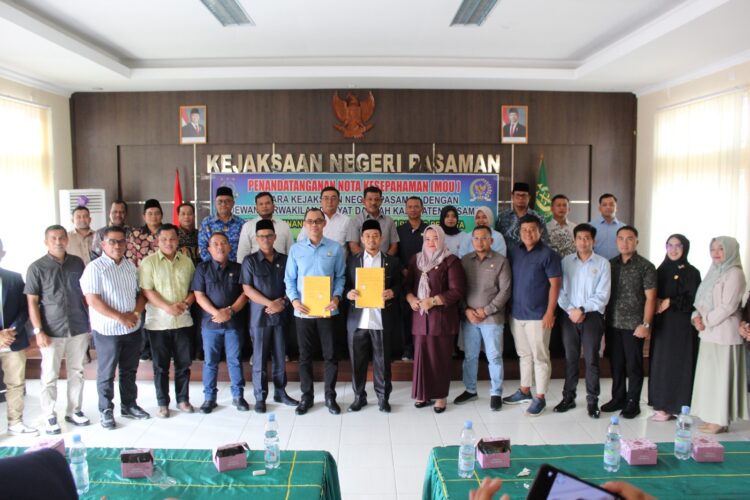 PASAMAN, HARIANHALUAN.ID – Kejaksaan Negeri (Kejari) Pasaman melaksanakan penandatanganan nota kesepahaman/Memorandum of Understanding (MoU) dengan Dewan Perwakilan Rakyat Daerah (DPRD) Kabupaten Pasaman di Aula Lt. II Kantor Kejari, Senin (17/2/2025).