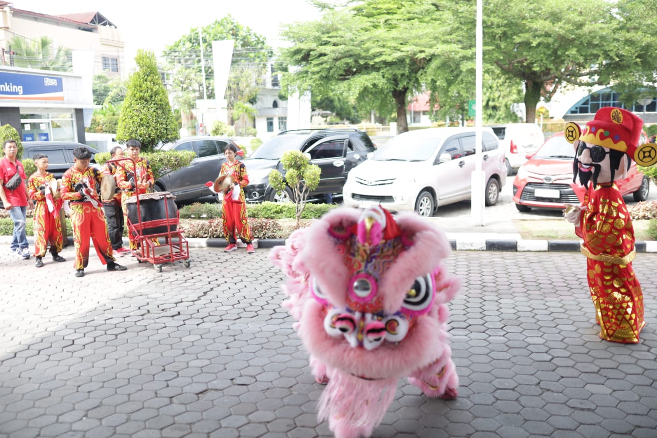 Selain pertunjukan barongsai, acara juga diisi dengan pembagian angpao simbolis serta promo khusus bagi nasabah yang hadir.