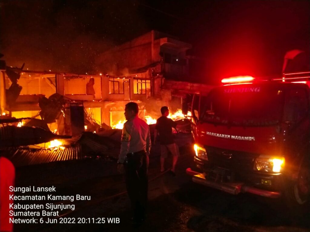 HALUANNEWS, SIJUNJUNG – Pada hari senin 06 Juni pukul 19.30 Wib di depan terminal Truk Kiliran Jao yang berada di Jorong Kiliran Jao Nagari Muaro Takuang Kecamatan Kamang Baru Kabupaten Sijunjung telah terjadi kebakaran beberapa Unit Ruko yang terbakar.